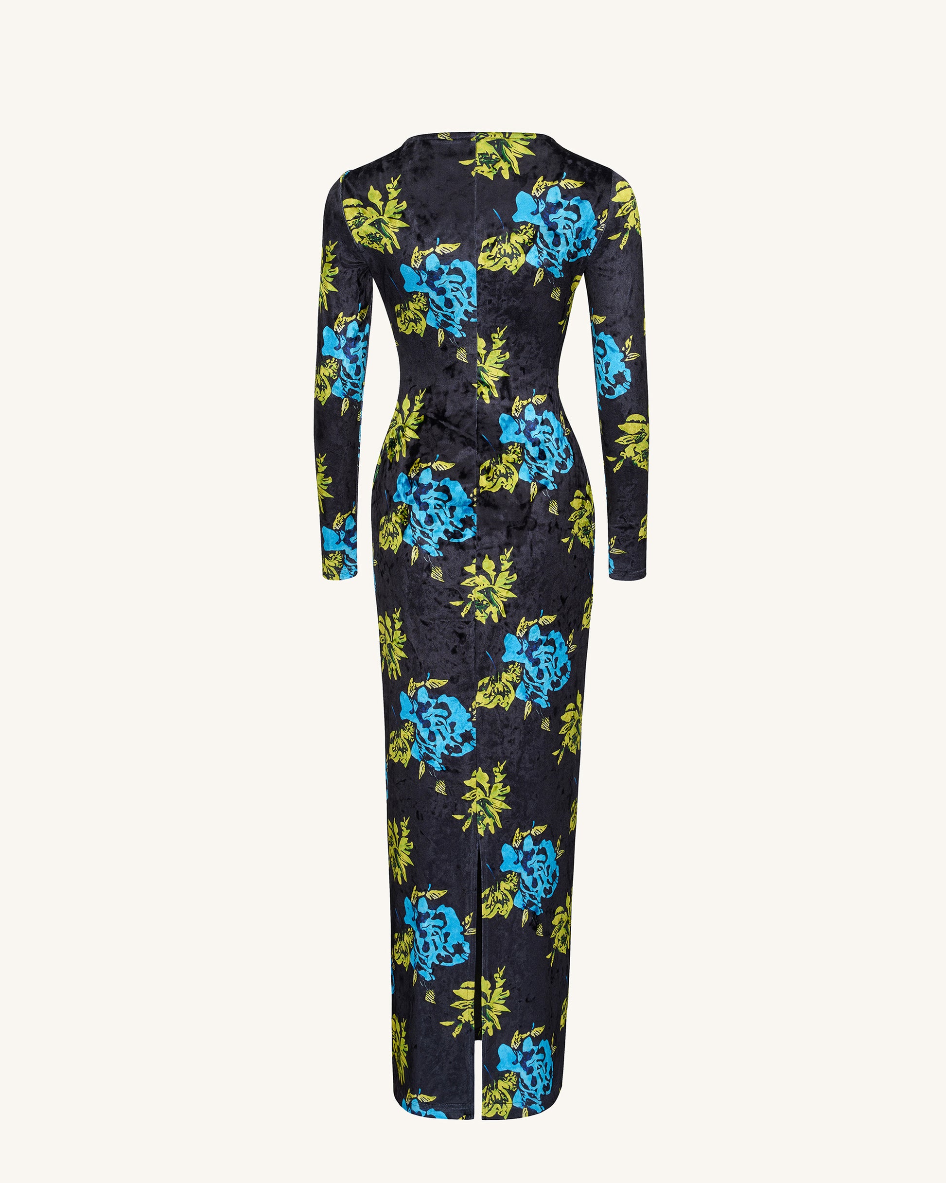 Zoe 鮮やかな花柄の長袖ガウン - マルチカラー