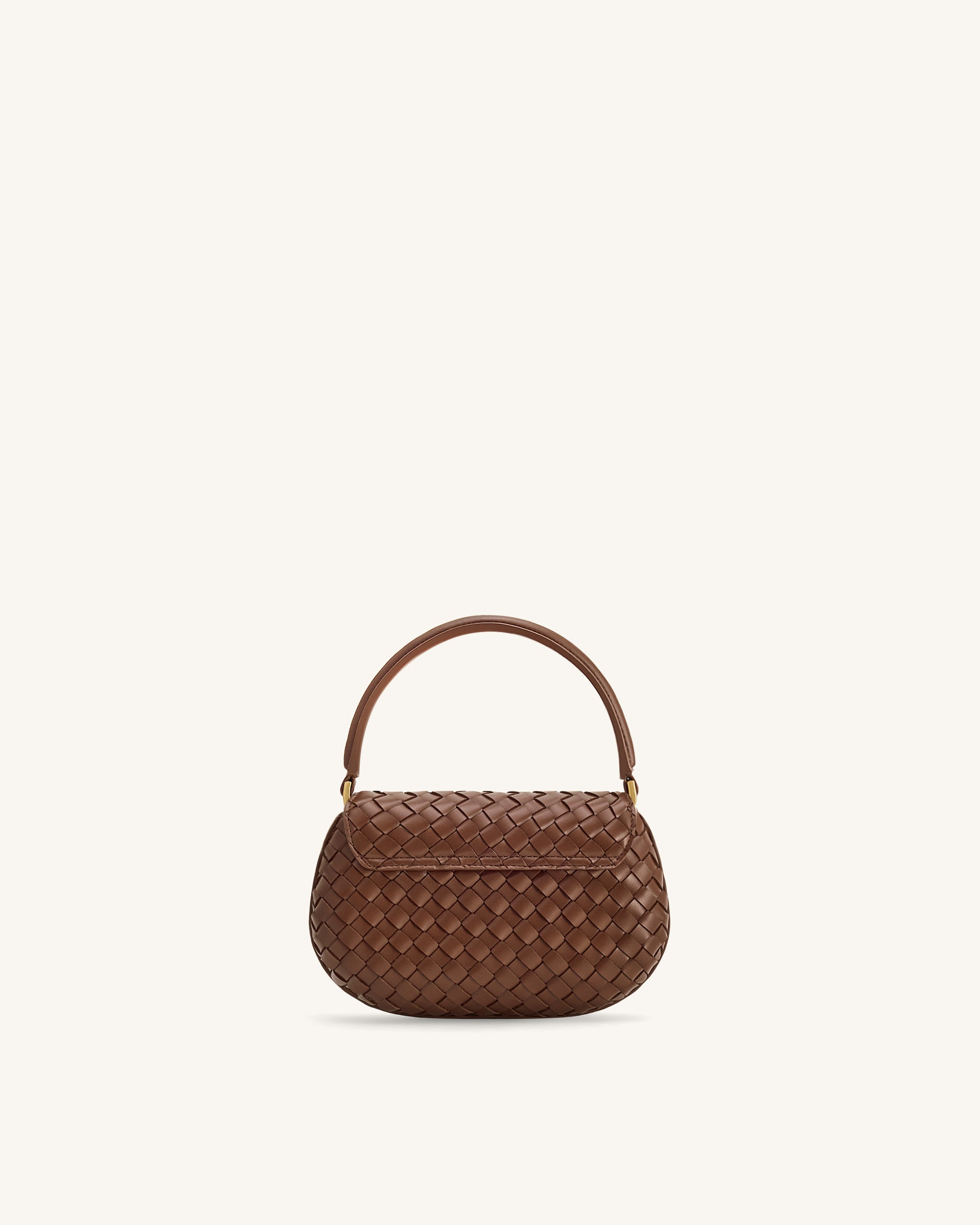Zuri 手編みラウンドトップハンドルバッグ - ブラウン